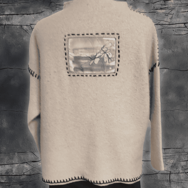 Découvrez l’Esprit FRING’UP avec ce pull upcyclé unique, transformé avec soin pour offrir une seconde vie à un vêtement existant. Ce modèle est sublimé par des broderies créatives réalisées autour d’une illustration originale de l’artiste peintre Christine Gallardo, apportant une touche stylée tout en conservant un look décontracté.
