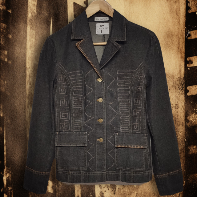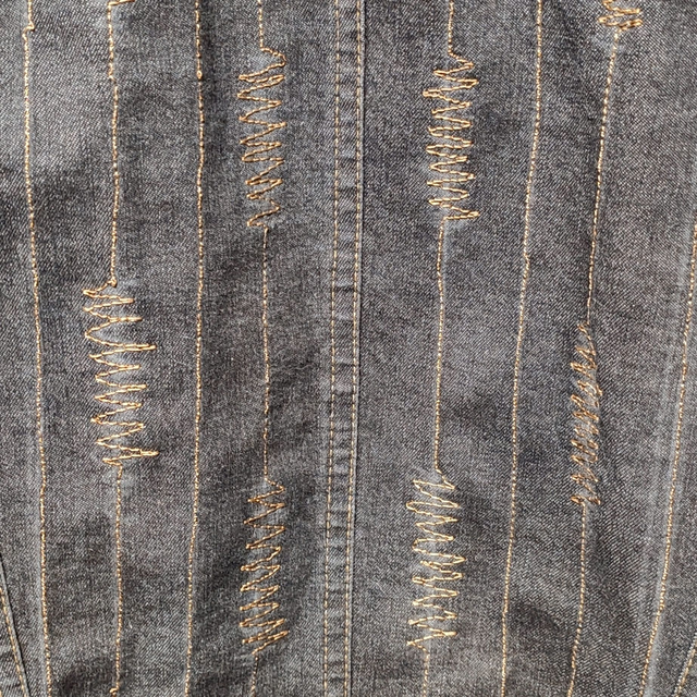 Les broderies selon la technique du piqué libre lui confèrent un style unique et original. En plus d'être tendance, elle s'inscrit dans une démarche d'économie circulaire incontournable en utilisant des matériaux recyclés.