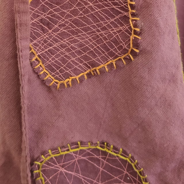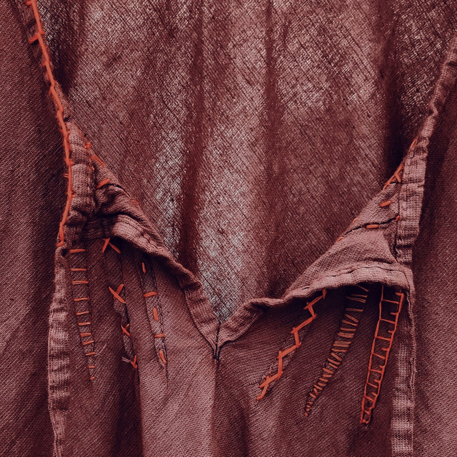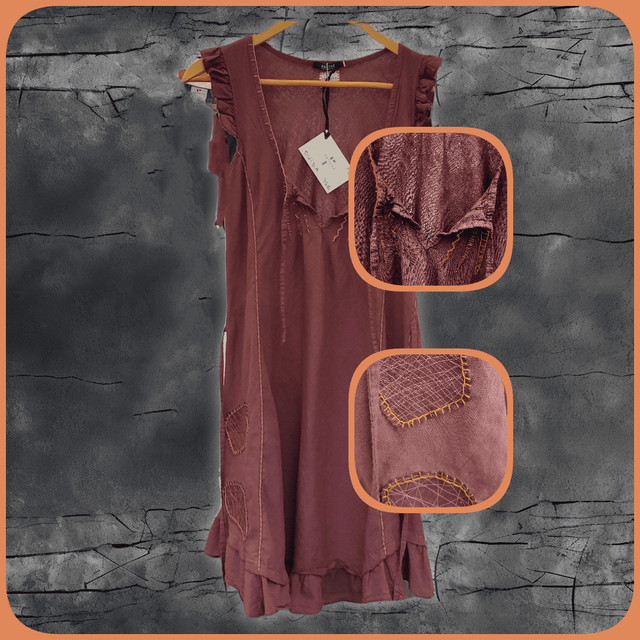 Plongez dans l’univers FRING'UP avec cette robe upcyclée, teinte artisanalement, patchée avec audace et brodée à la main. Chaque détail reflète une volonté de faire du neuf avec du vieux, dans une démarche de mode engagée et circulaire.