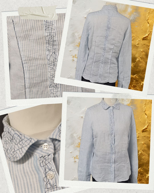 Cette chemise est issue d’un processus de surcyclage (upcycling), valorisant des matières existantes pour leur donner une seconde vie