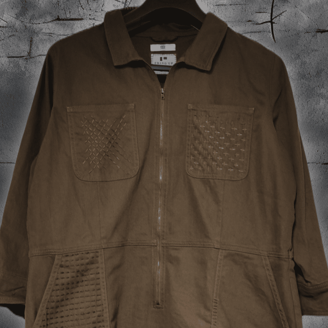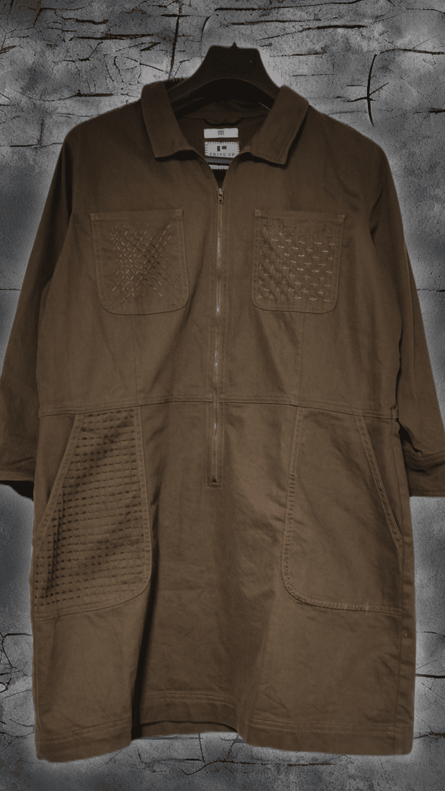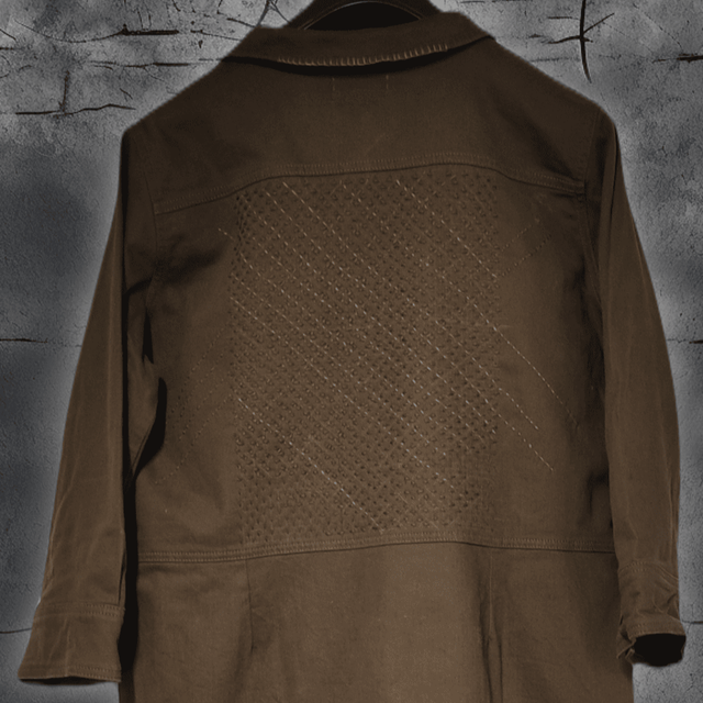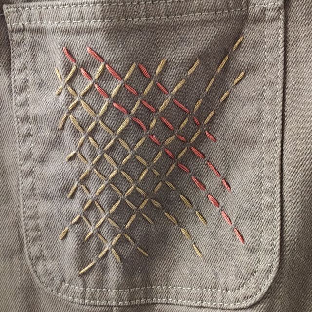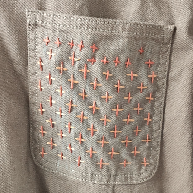 Découvrez cette pièce exceptionnelle : une robe seconde main upcyclée ornée de délicates broderies sashiko réalisées à la main.