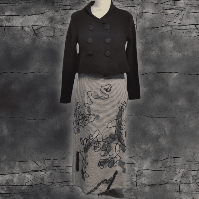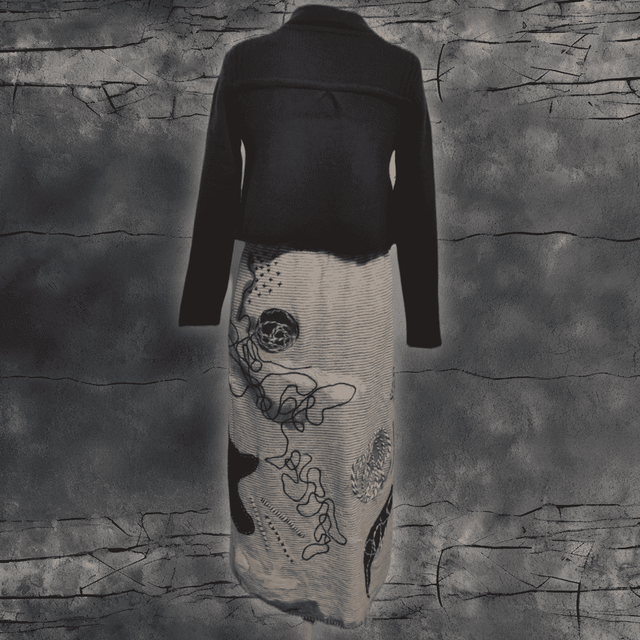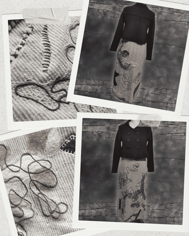Ajoutez une pièce authentique et éthique à votre garde-robe avec cette jupe upcyclée via la technique du feutrage à l'aiguille. Soyez élégante, soyez unique, et faites un geste pour la planète.