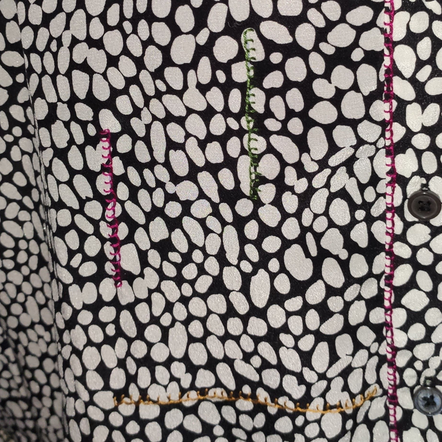 Découvrez un chemisier 100% soie, sublimé par un travail artisanal minutieux où chaque fil utilisé tel un maquillage crée un look unique et raffiné. Conçu dans une démarche d’économie circulaire et d’upcycling, ce vêtement incarne l’art de faire du neuf avec du vieux. Chaque pièce est faite main, garantissant une authenticité et une singularité incomparables. Porter ce chemisier, c’est affirmer un style élégant tout en soutenant une mode responsable.